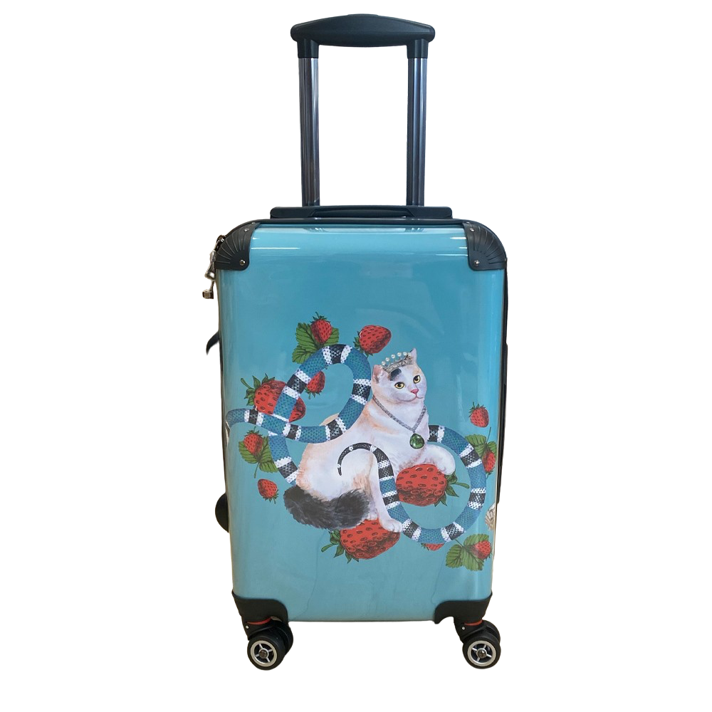 Kitty Suitcase - printed onto 100% poly, 280gsm canvas and put under the Plexiglass front of this sturdy suitcase, in an HD, edge to edge finish. Stash it easily in the overhead compartment, so you don't even need to worry about baggage claim. The soft-grip handle is adjustable, and this combined with the 360° swivel wheels makes it a true joy to use - and look at.
