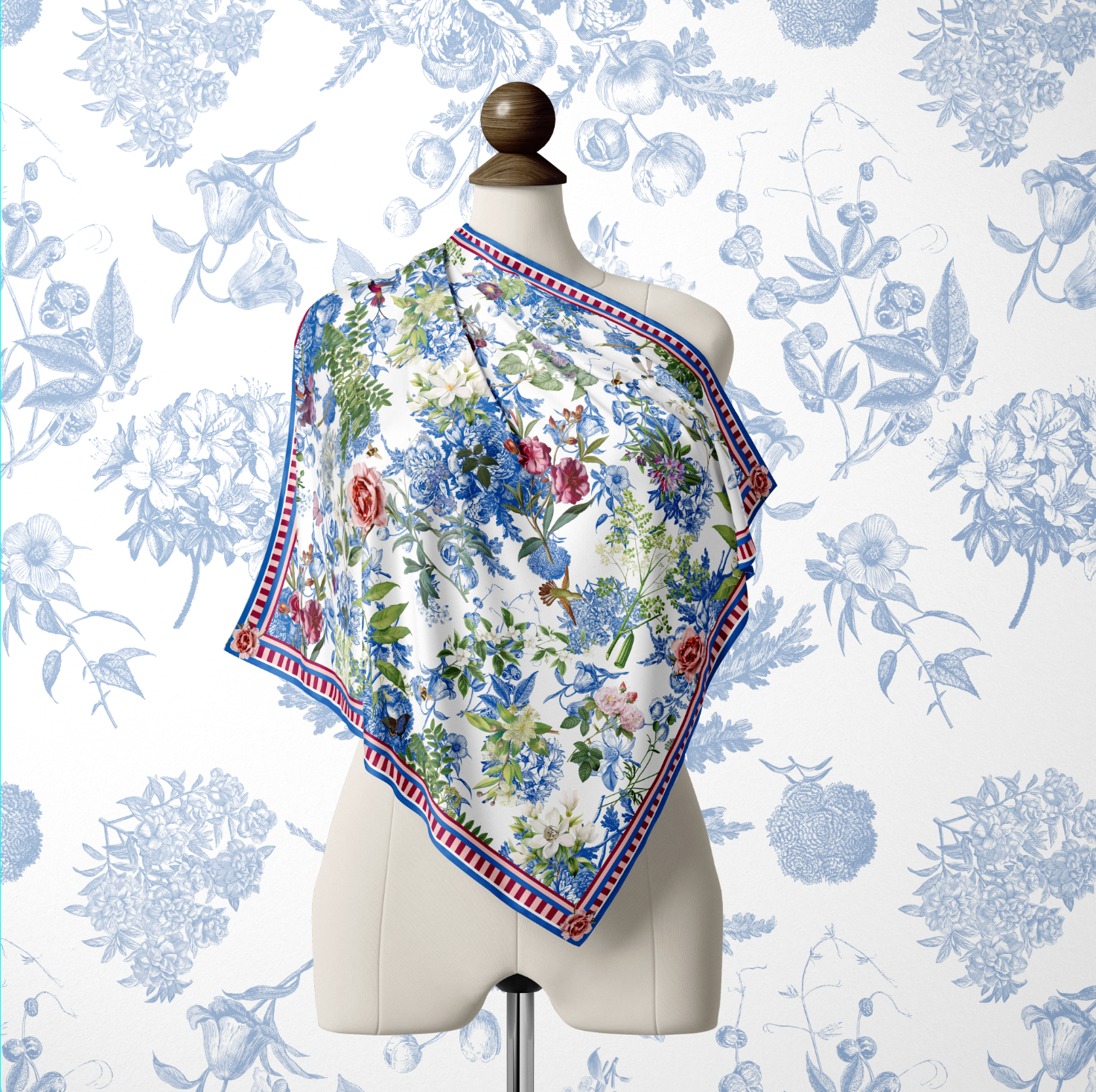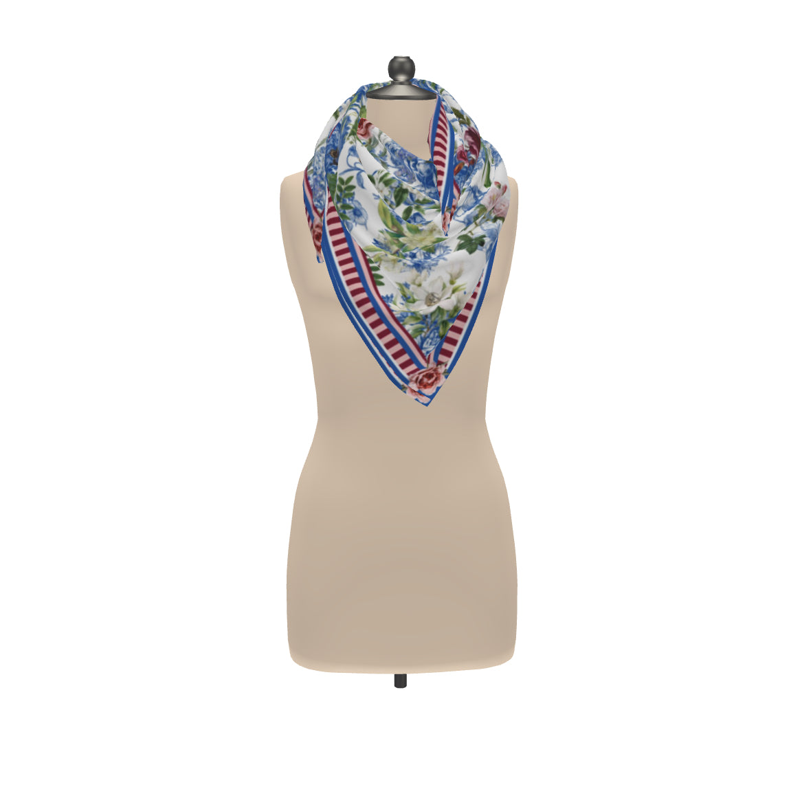 This Silk Sensation fabric is a gorgeously smooth poly blend, with a satin weave construct that is solid once finished. It has a soft lustre and is lightweight with a delicate feel. This scarf is printed on both sides for a more luxurious look