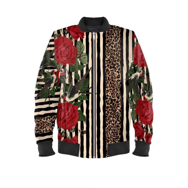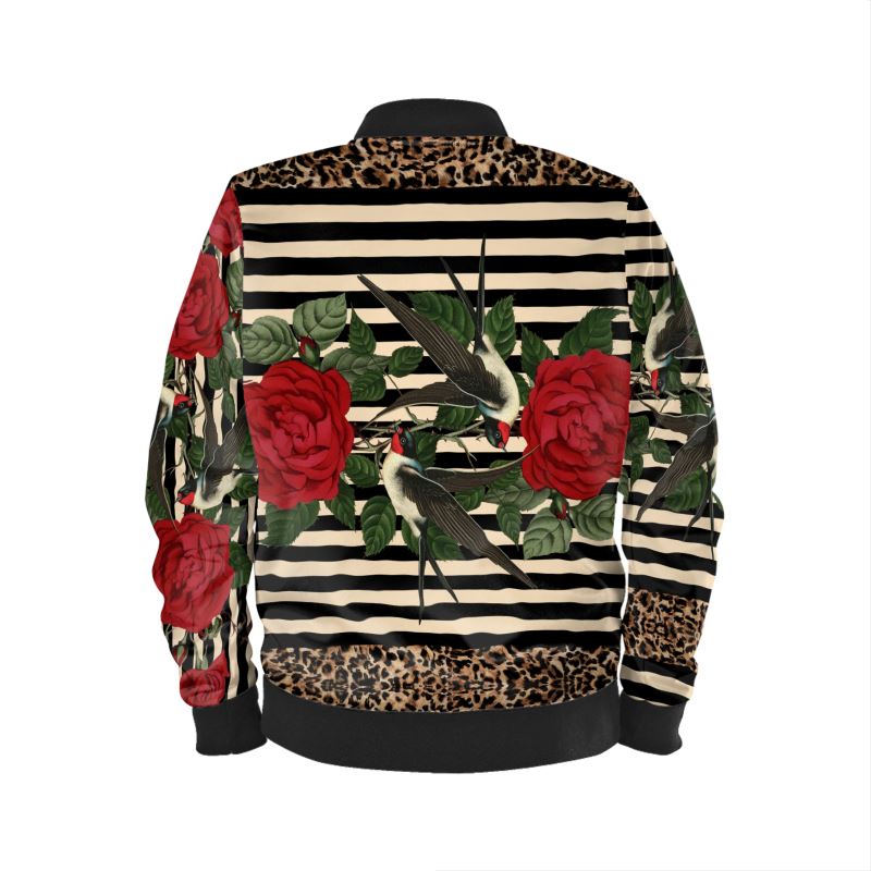 Rock 'N' Roses Men's Satin Bomber Jacket - Stripe
