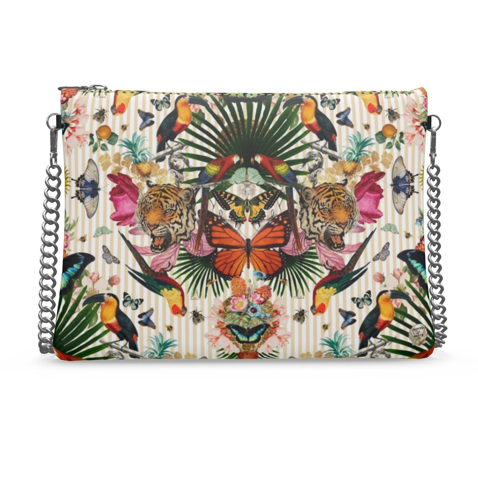 Your Paradise Lost "Day" 100% Nappa Leather Cross Body handbag is lined with luxury Suede Vision fabric, in a neutral beige colour. The gold-coloured, nickel-plated chain strap is stunning and matches the chain clips and the zip teeth and puller beautifully.