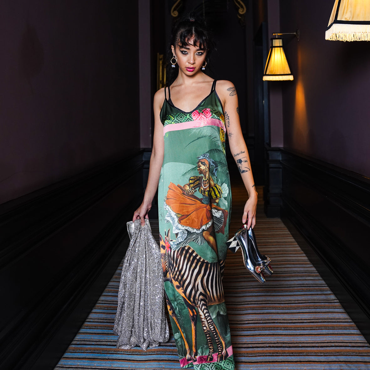 RiRi Silk Slip Dress - Olive