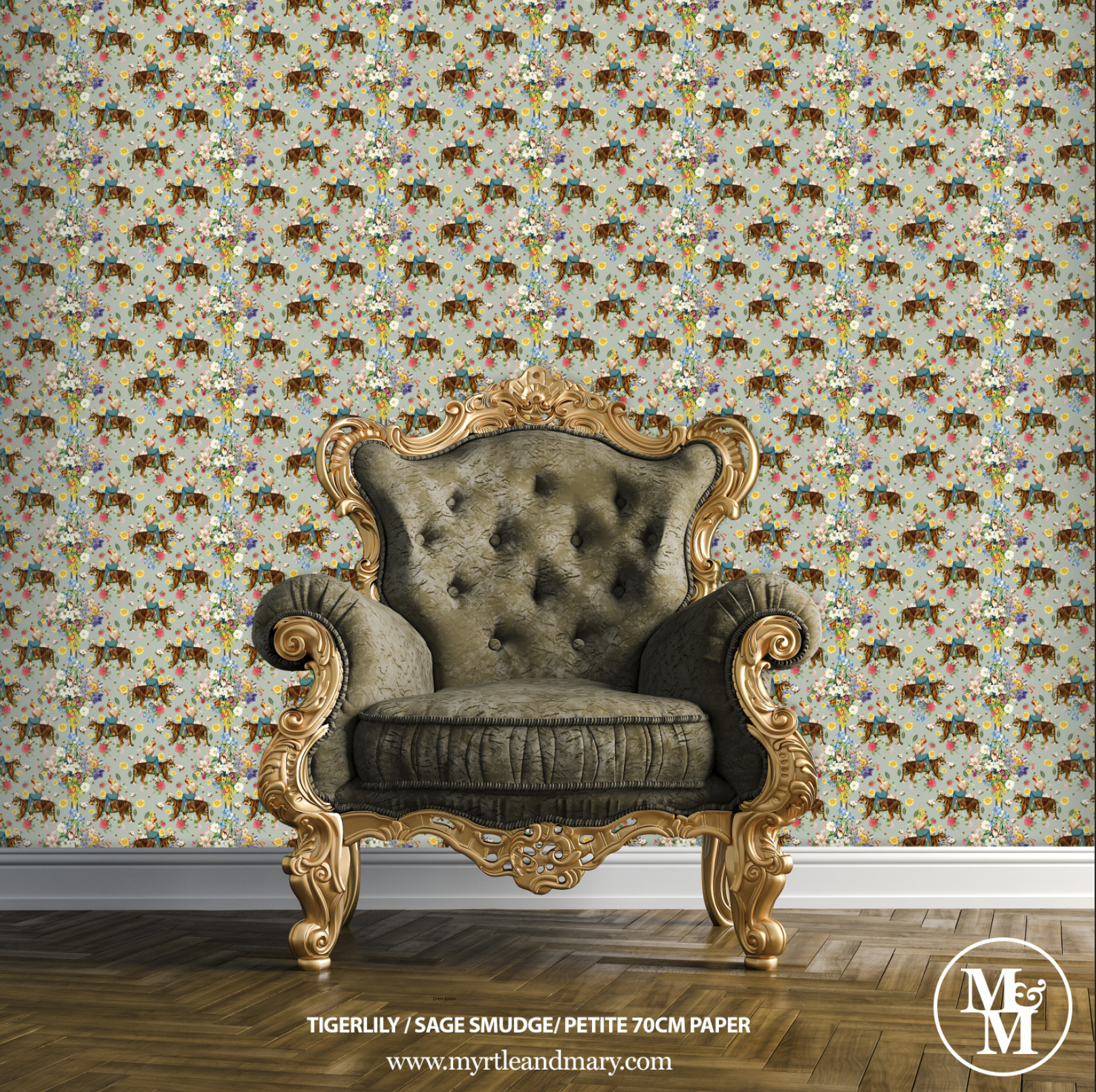 Our made-to-order Tigerlily Petite Wallpaper 70cm Sage Smudge luxury wallpapers are printed in eco friendly inks on non woven Toll coated 147gsm paper.